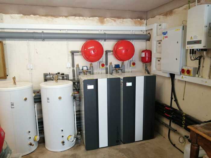 As there were two buildings on the site, two 15kW Kensa Evo ground source heat pumps were supplied – one to each dwelling – to provide all heating and hot water demands.