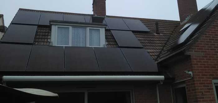 The PV array was split across two roofs in order to maximise generation throughout the day. The PV system consisted of 16 LG 320 watt all black modules with SolarEdge power optimisers, a SolarEdge HD Wave inverter and K2 roof mounting system.